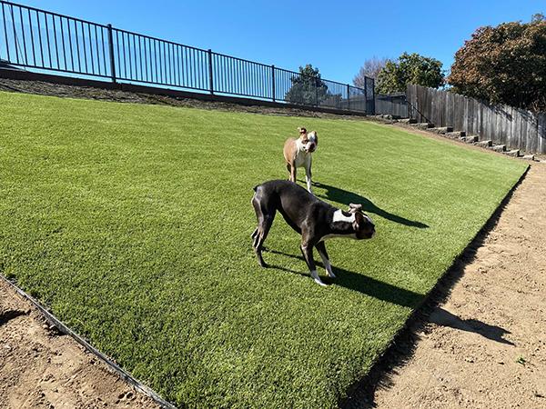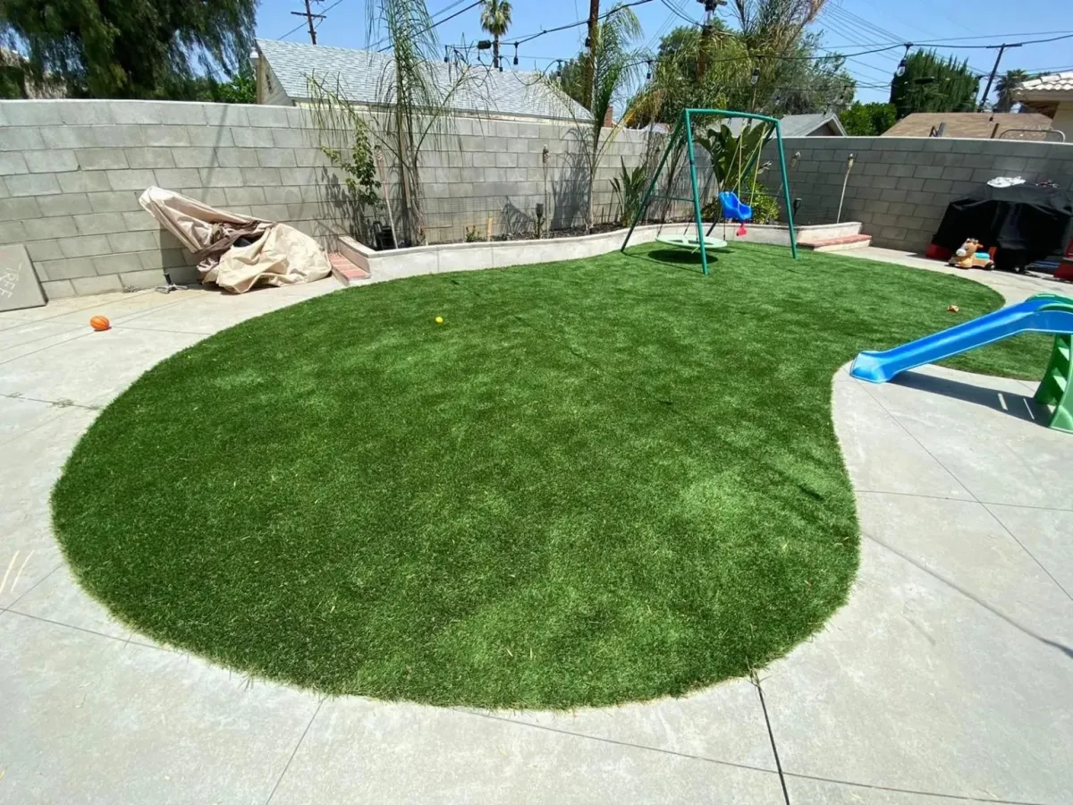 Our turf is made with non-toxic, pet- and family-safe materials. It’s soft, durable, and designed for everyday use—whether that’s kids playing, pets running, or just relaxing outside.