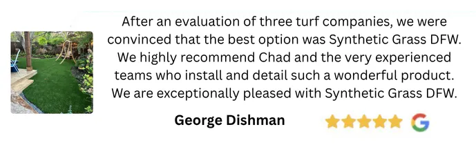 "I highly recommend Synthetic Grass DFW. From start to finish, it was a great experience. The free quote was scheduled easily and quickly, and Jack came out to location and communicated well on when he was going to arrive. They were competitively priced for the two areas of turf I had done on both sides of my house, and they got me scheduled quickly. Another great part of the experience was that Synthetic Grass DFW doesn't subcontract out the work, and they stand by their work."