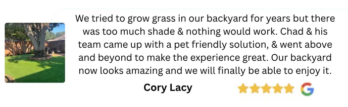 "Excellent service and installation speed! My new backyard has transformed our daily life. No more mud or bugs! Best house improvement we’ve ever made. Call Chad Harris to make it happen. Solid, honest dude!"